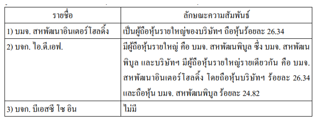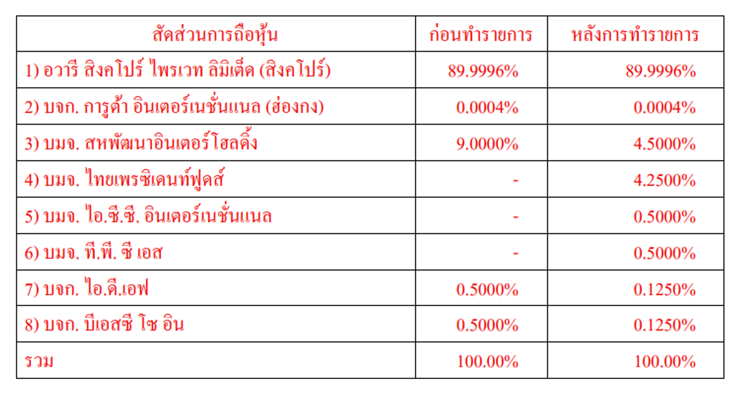 อัตราการมีส่วนร่วม : ภายหลังการเข้าทำรายการหุ้นสามัญจำนวน 1,062,500 หุ้น คิดเป็นร้อยละ 4.25 ของทุนจดทะเบียนและชำระแล้ว